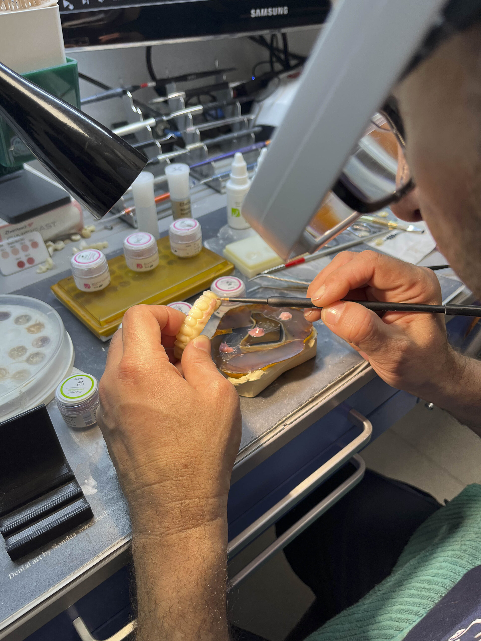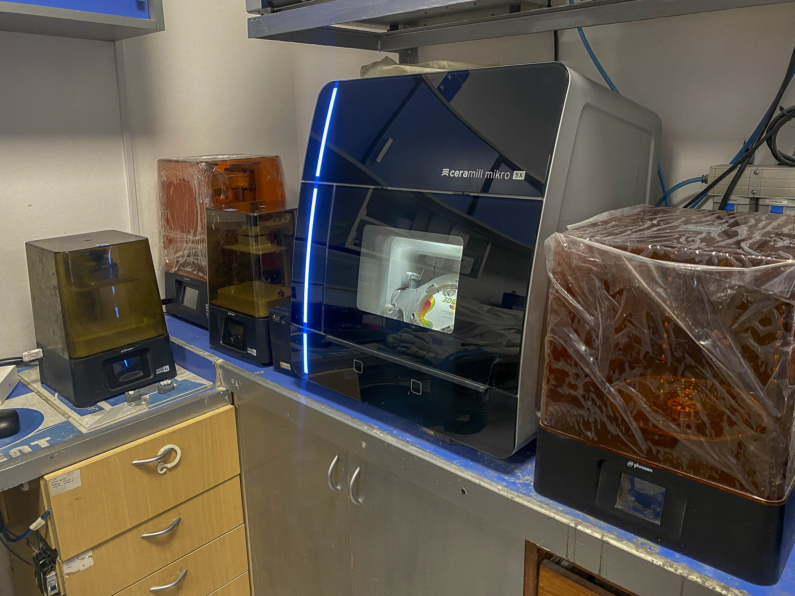 En este sector contamos con computadoras equipadas con última tecnología para poder utilizarlas con el sistema ExoCad y en el diseño de la sonrisa. Para los escaneados empleamos dos scanners. Además utilizamos impresoras 3D de resina de la más alta calidad, que fotocuramos y limpiamos con los equipos apropiados. Contamos con sistema IncadCam y una amplia variedad de biblioteca original para el sector de implantes. Está equipado con fresadoras para trabajar el zirconio, PMMA, ceras, sintron y PEEK.