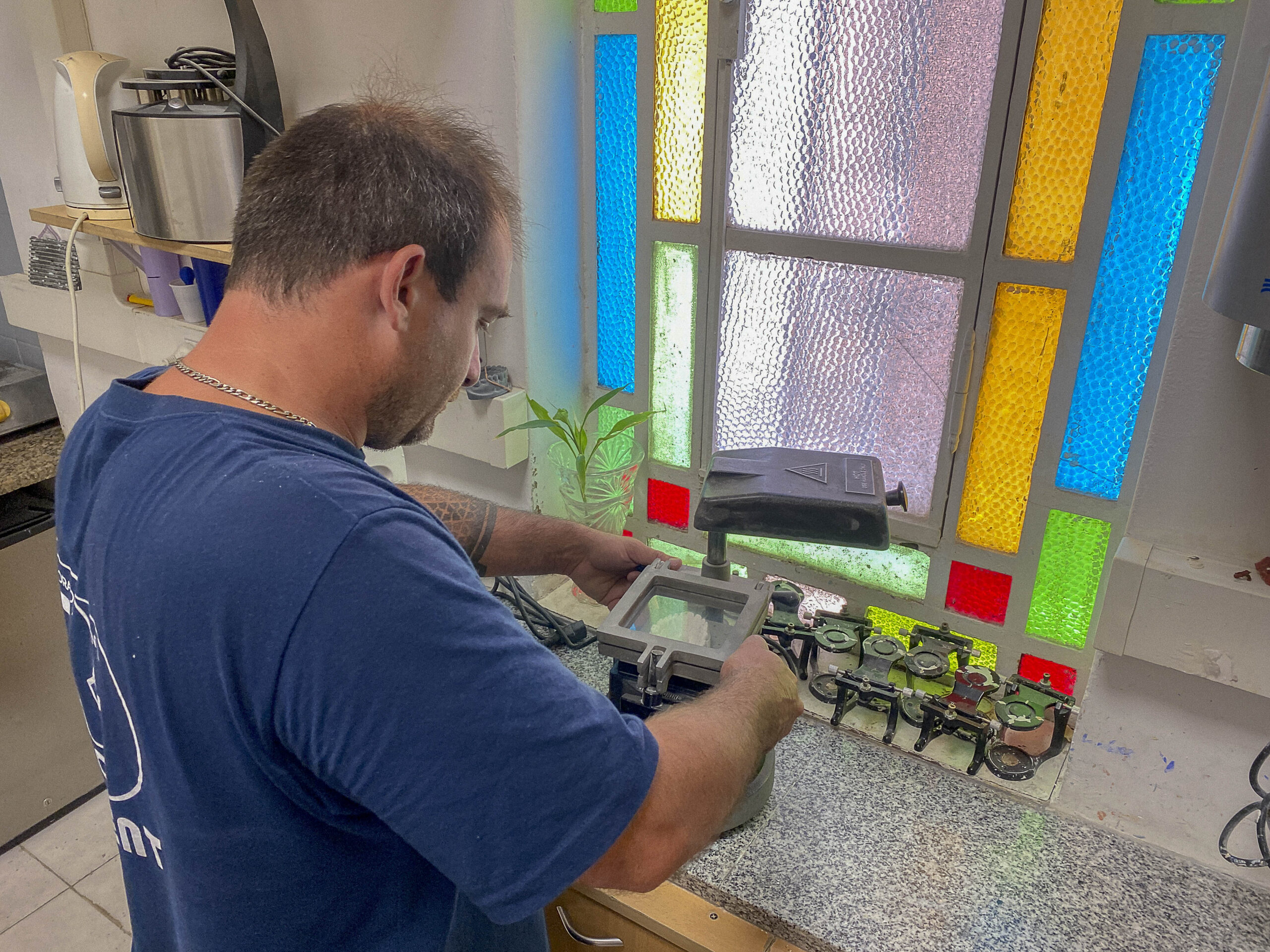 En cuanto la parte de Acrílico se utiliza una destiladora para la vaporera que empleamos para limpiar modelos y, para polimerizar (como la presurizadora) el acrílico para darle un mejor acabado. Se inyectan PEEK, nylon y PMMA, y se les da un acabado deseable con la pulidora. Utilizamos la fotocuradora para cubetas individuales o para transferencia de implantes. En esta área se tratan las prótesis caracterizadas, terminados y rebasados. En ocasiones se realizan trabajos de ortopedia.